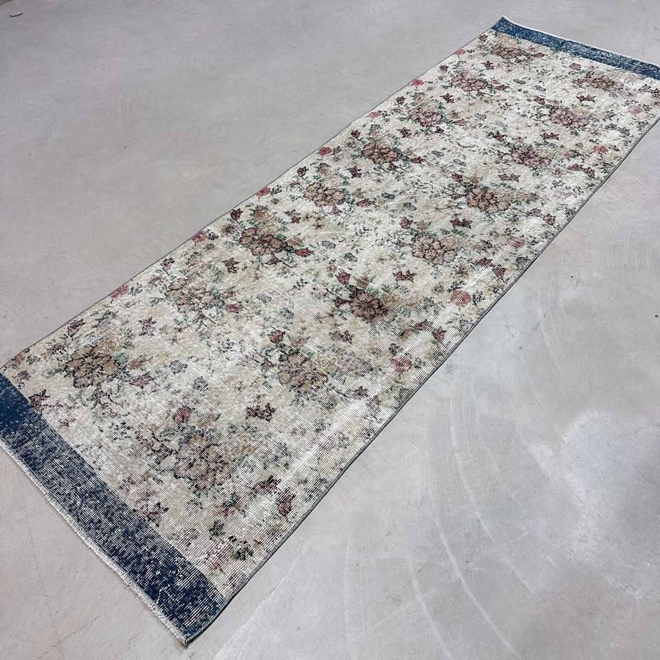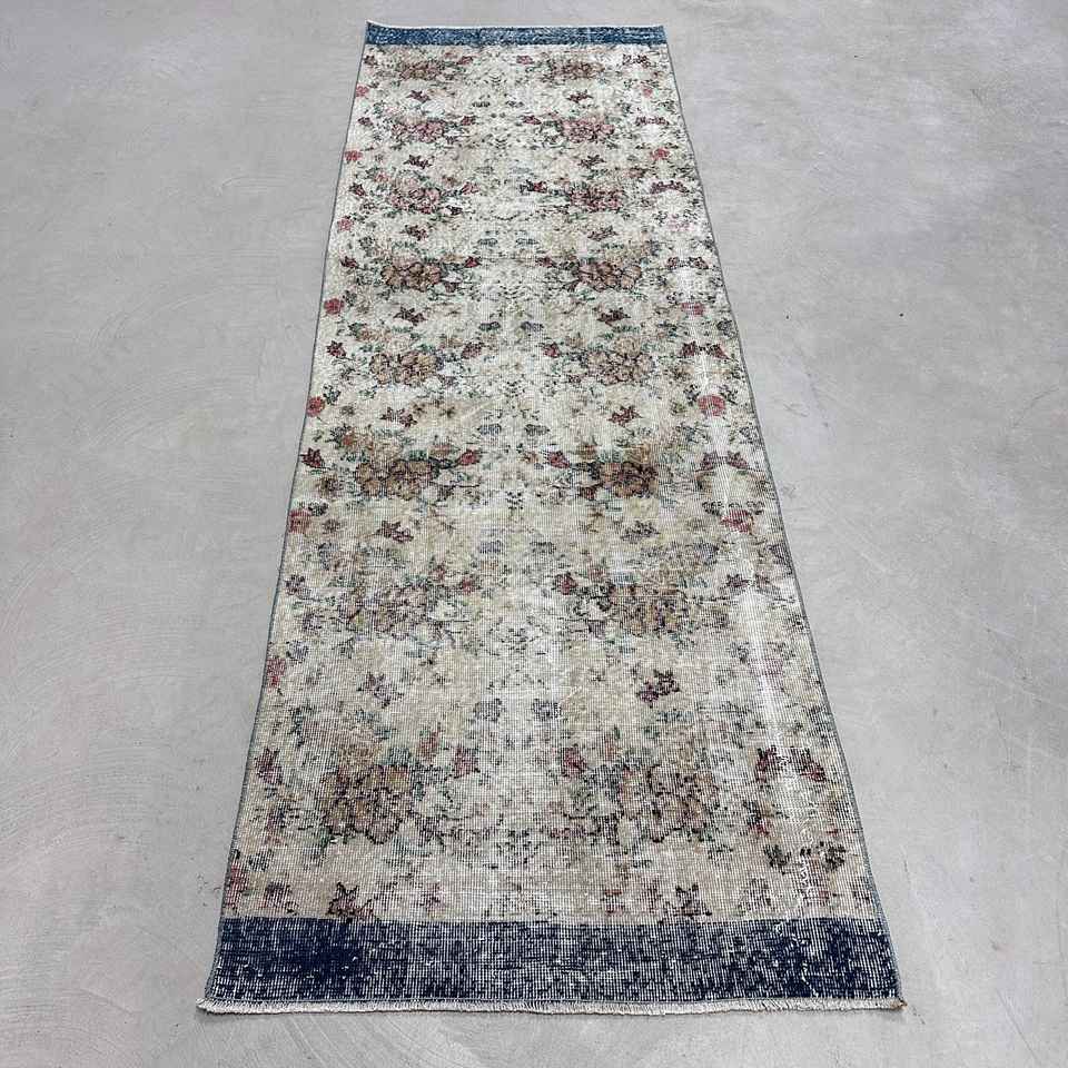 Turkish Runner Rug 2.9x9.1 ft, Gray Blue Moroccan Rug Wool