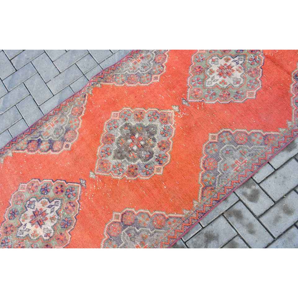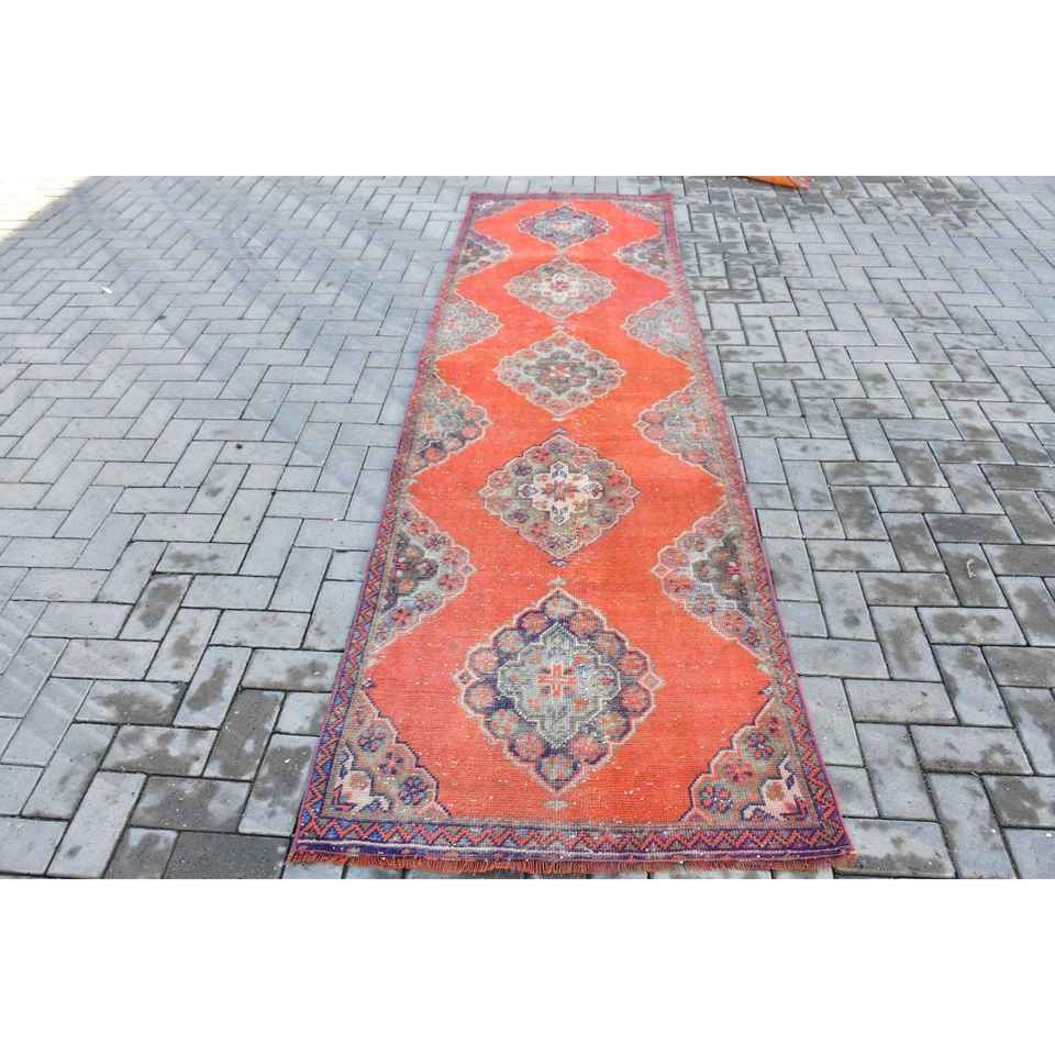 Turkish Runner Rug 3.1x10.2 ft, Red Blue Floral Rug Wool