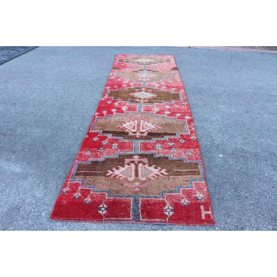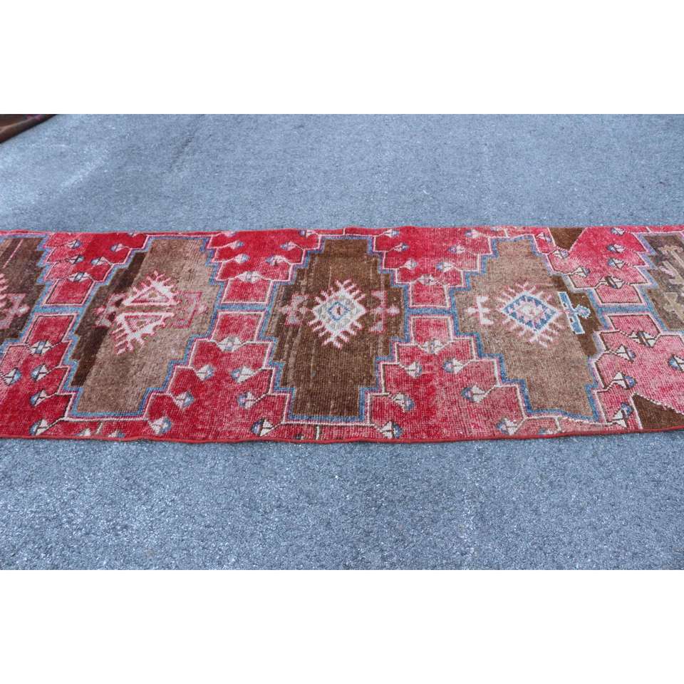 Turkish Runner Rug, 3.5x11.5 ft Vintage Rug, Red Herki Wool Rug