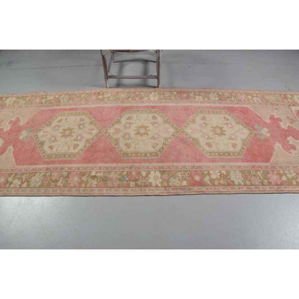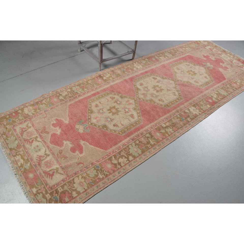 Turkish Runner Rug 3.6x10 ft (111x306 cm), Red Solid Vintage Rug