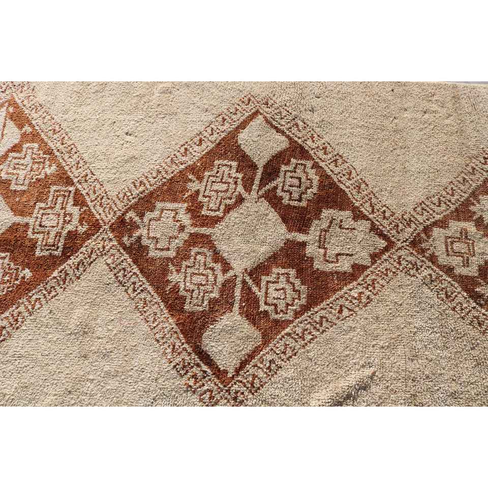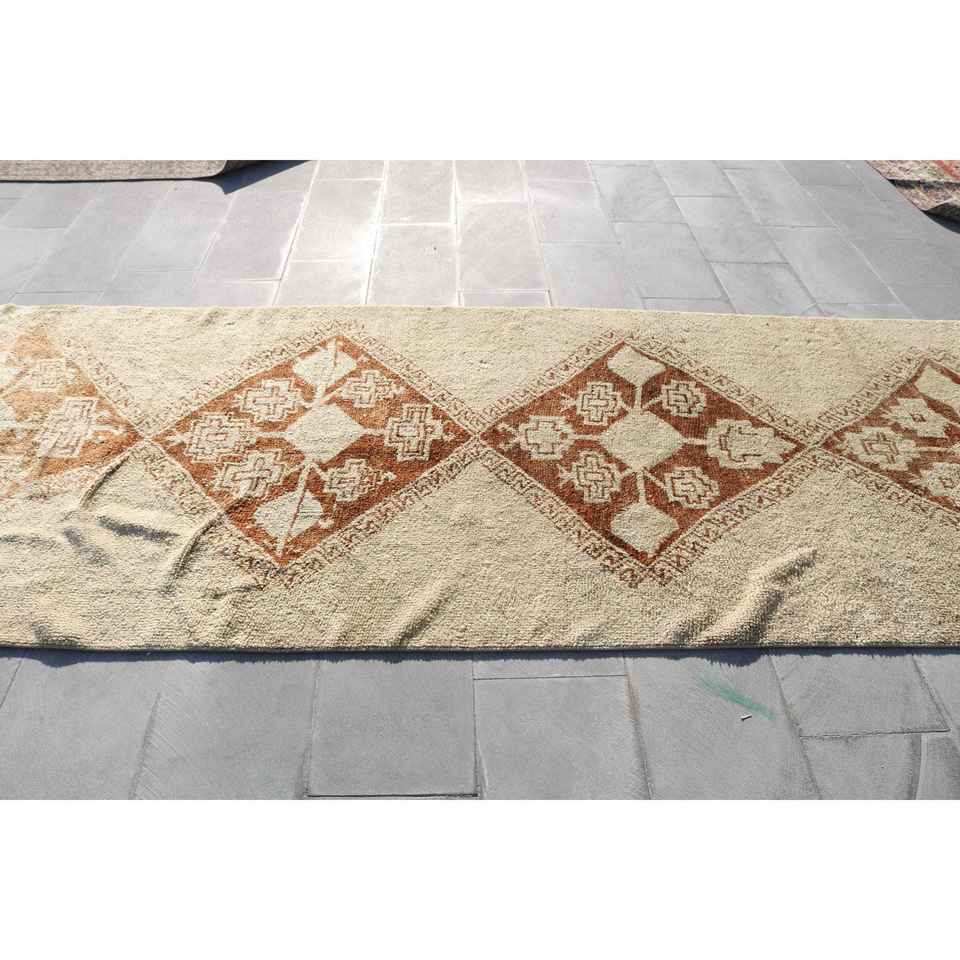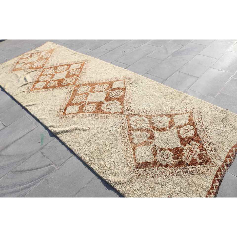Turkish Runner Rug 4.2x12.4 ft, Vintage Brown Southwestern Wool Rug