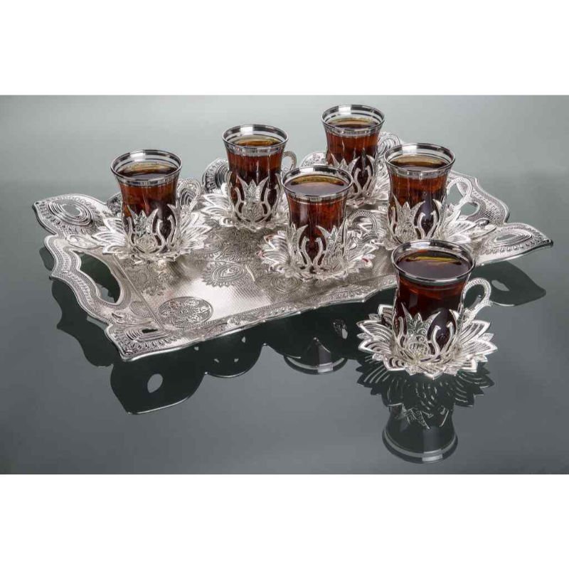 Turkish Silver Gold Tea Cup Bubble Set Saucer Tableware Glass Milk Tea Cups Chai Handmade Metalic Luxury Made in Turkey for Gift