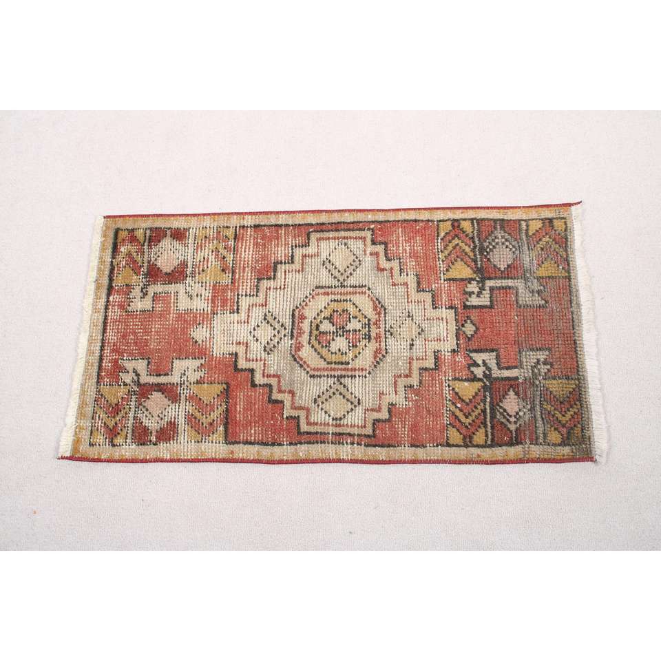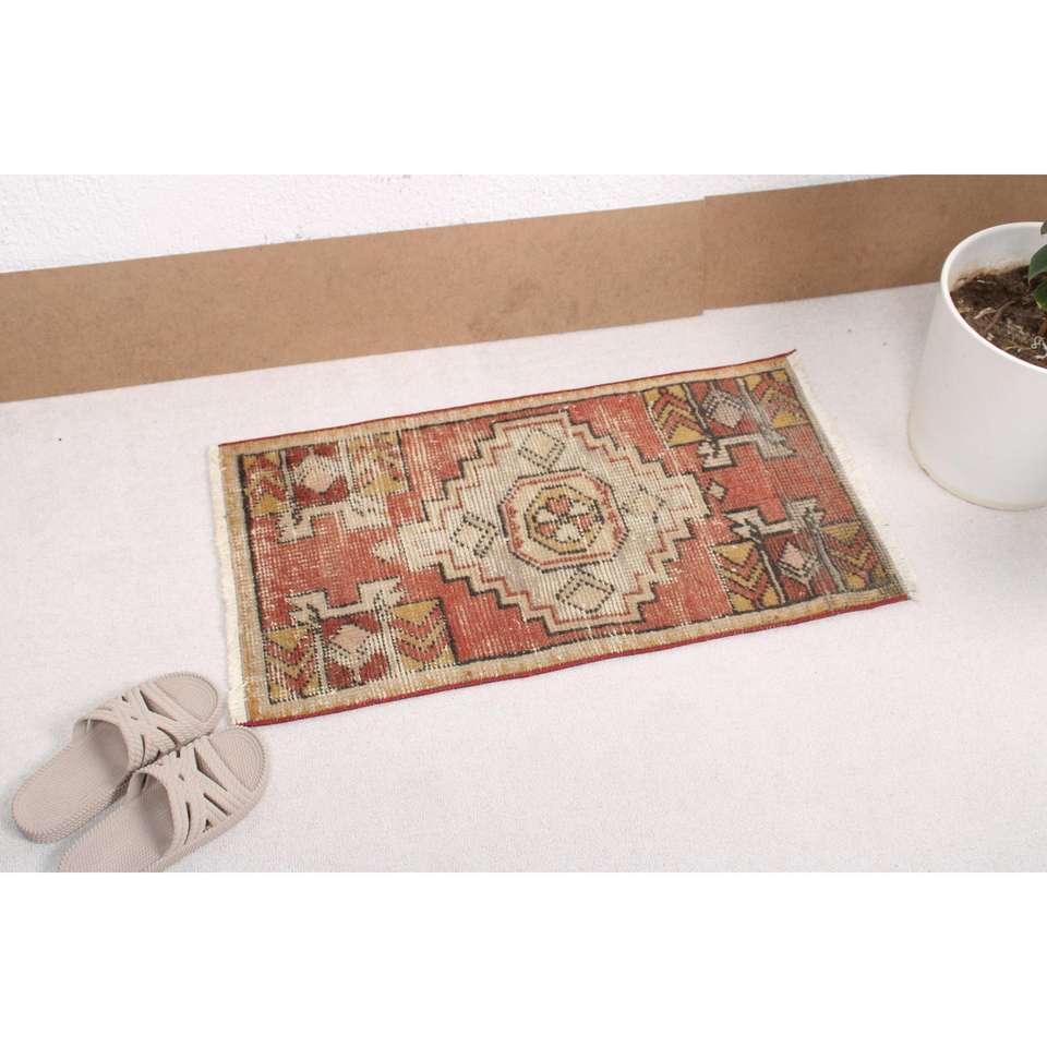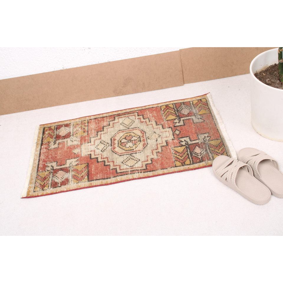 Turkish Small Rug, 1.4x2.7 ft Vintage Rug, Red Wool Rug