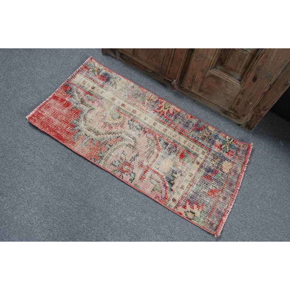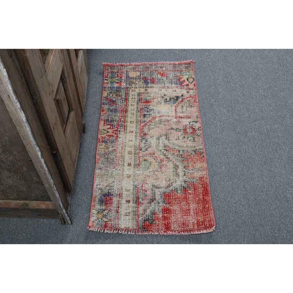 Turkish Small Rug 1.5x3.1 ft, Red Blue Camouflage Rug Wool