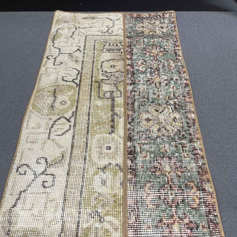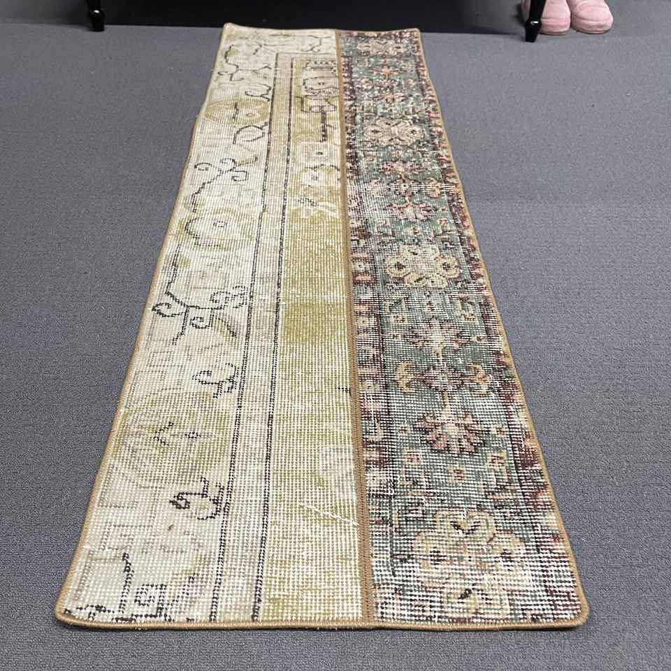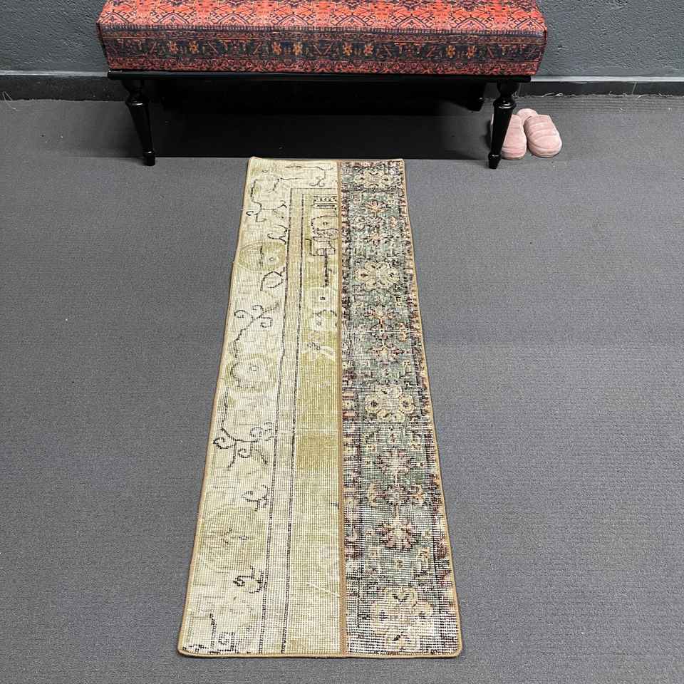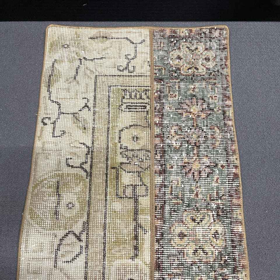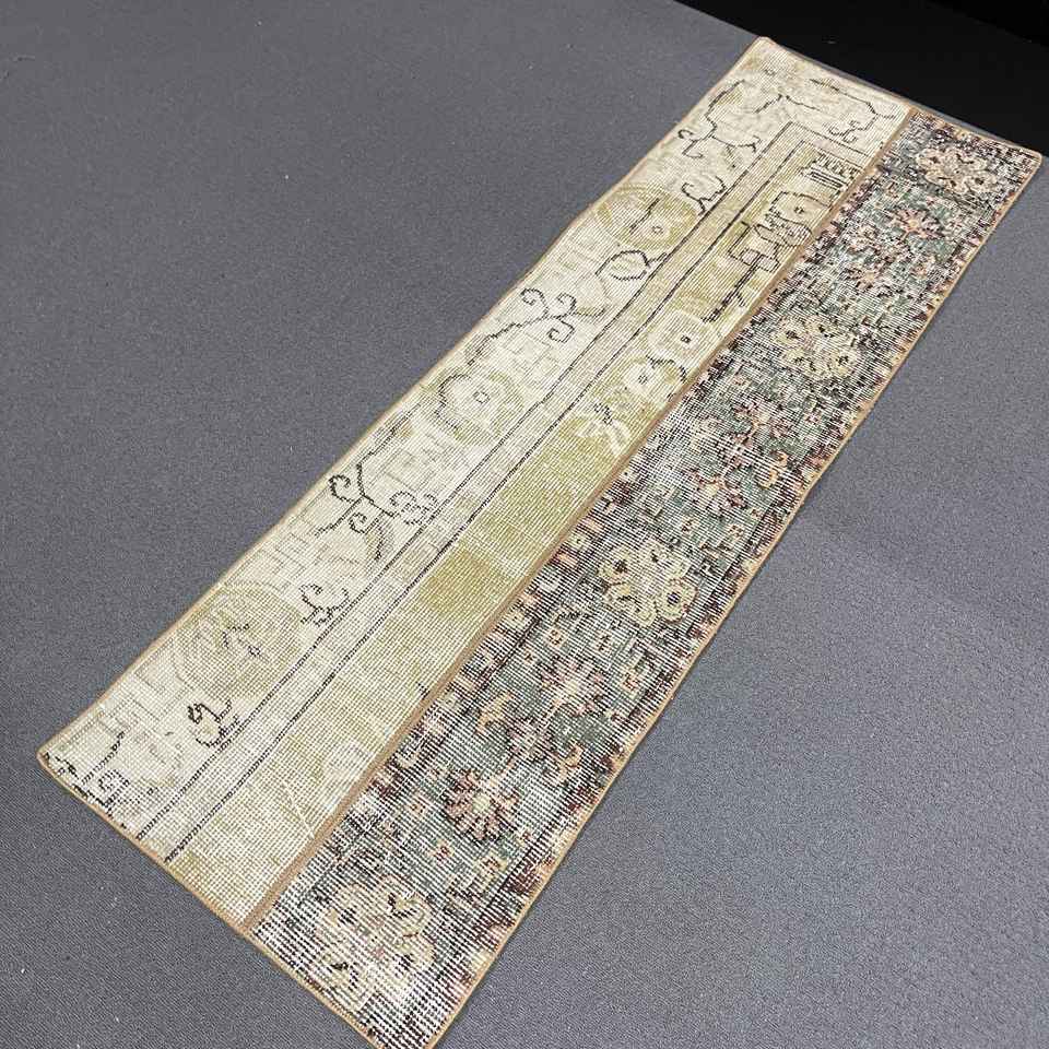 Turkish Small Rug, 1.6x5 ft Vintage Rug, Brown Wool Rug