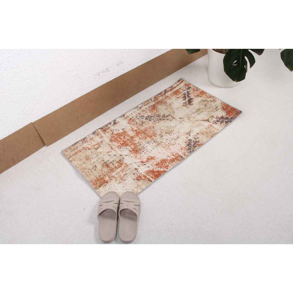 Turkish Small Rug, 1.7x3.3 ft Vintage Rug, Brown Wool Rug