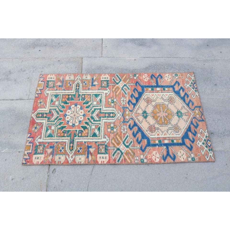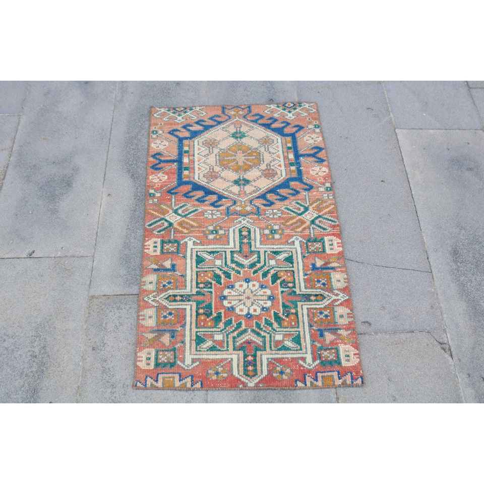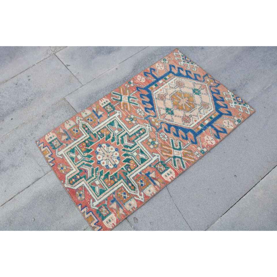 Turkish Small Rug 1.8x3 ft, Red Blue Camouflage Rug Wool