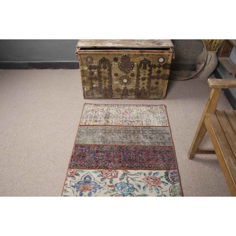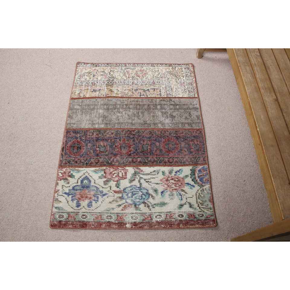 Turkish Small Rug 2.5x3.4 ft, Vintage Red Floral Wool Rug