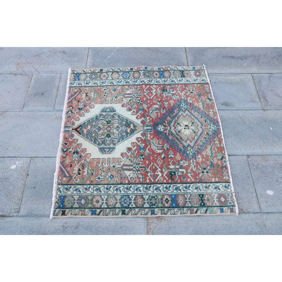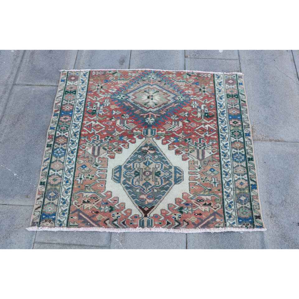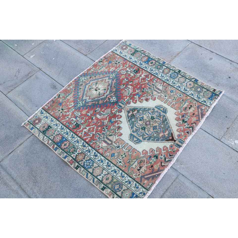 Turkish Small Rug 3.1x2.7 ft, Red Ikat Vintage Wool Rug