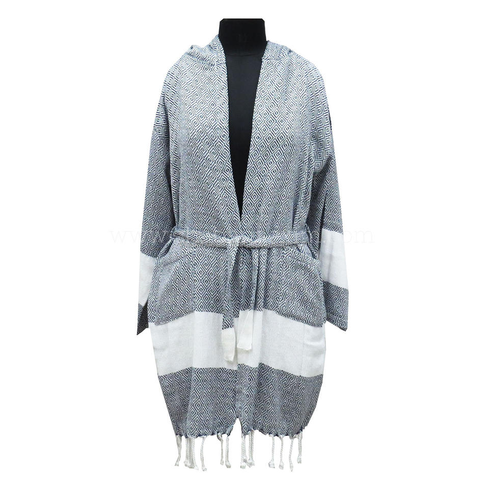 Turkish Towel Cotton Robe Hammam Bath Robe with Diamond Pattern & Striped Durable Fringed Indian Hammam Turkish Unisex Bathrobe