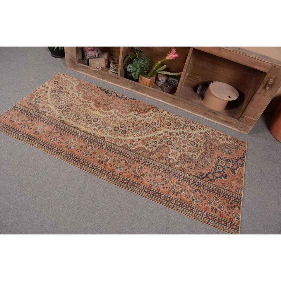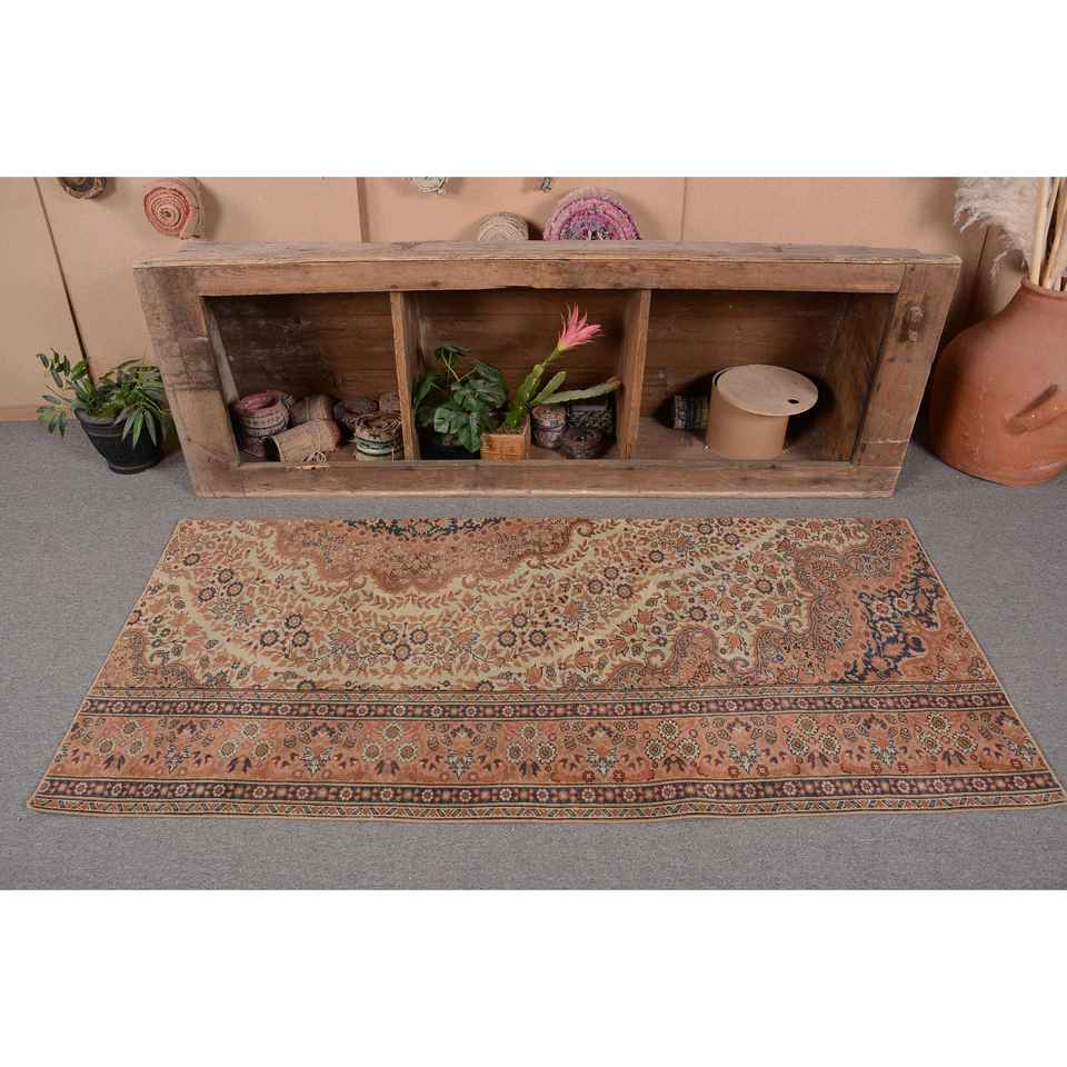 Turkish Vintage Patchwork Accent Rug 2.8x6 ft Brown Persian Wool Eco-Friendly Latex Backed
