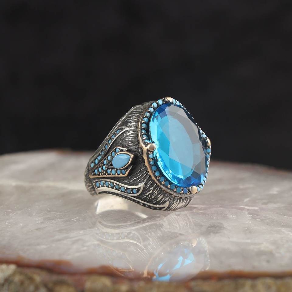 Turkish style vintage 925 Sterling Silver Men Ring Jewelry Black Onyx and Zircon Stone Mens Classic Men Ring,From Turkey