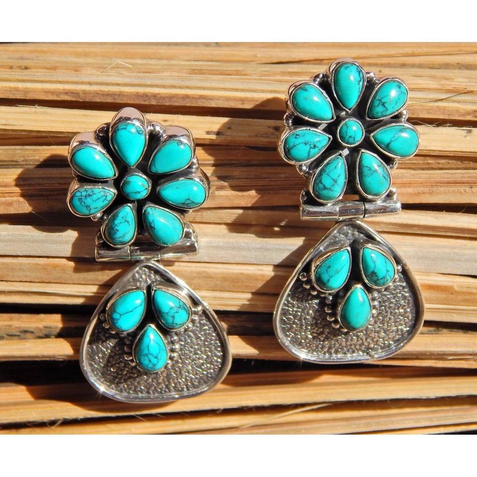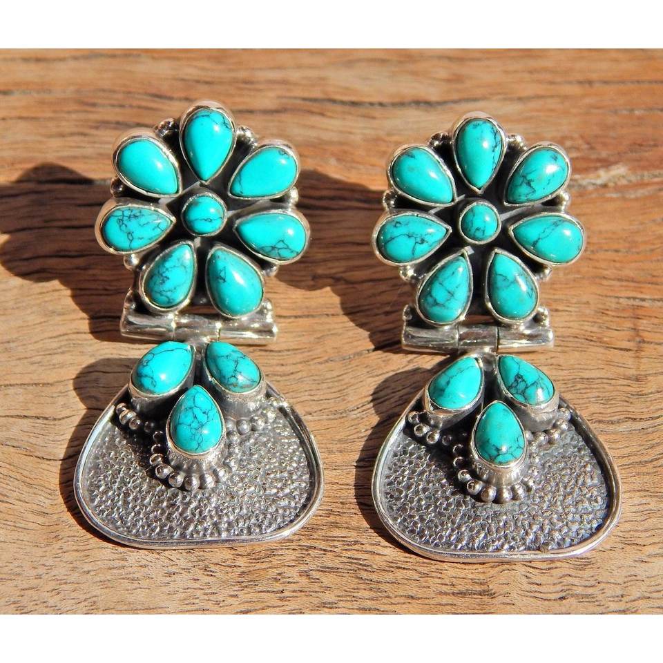 Turquoise 925 Sterling Silver Earring Stud Handmade Diamond Gift for Her-E0744-GS