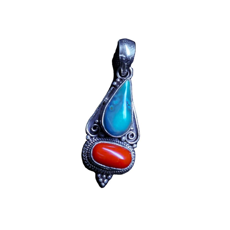 Turquoise and Carnelian Gemstone Pendant 925 Sterling Silver Wholesale Price High Quality Fine Jewelry