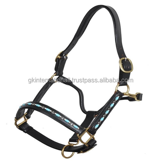 Turquoise Beaded Decorative Padded Leather Horse Halter Show Halter in All Custom Sizes and Colors Brass Hardware