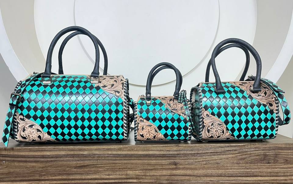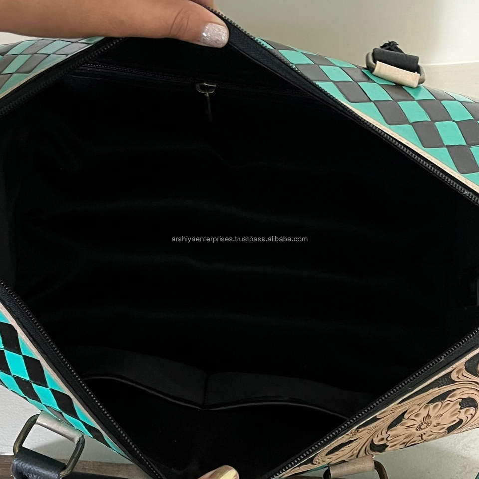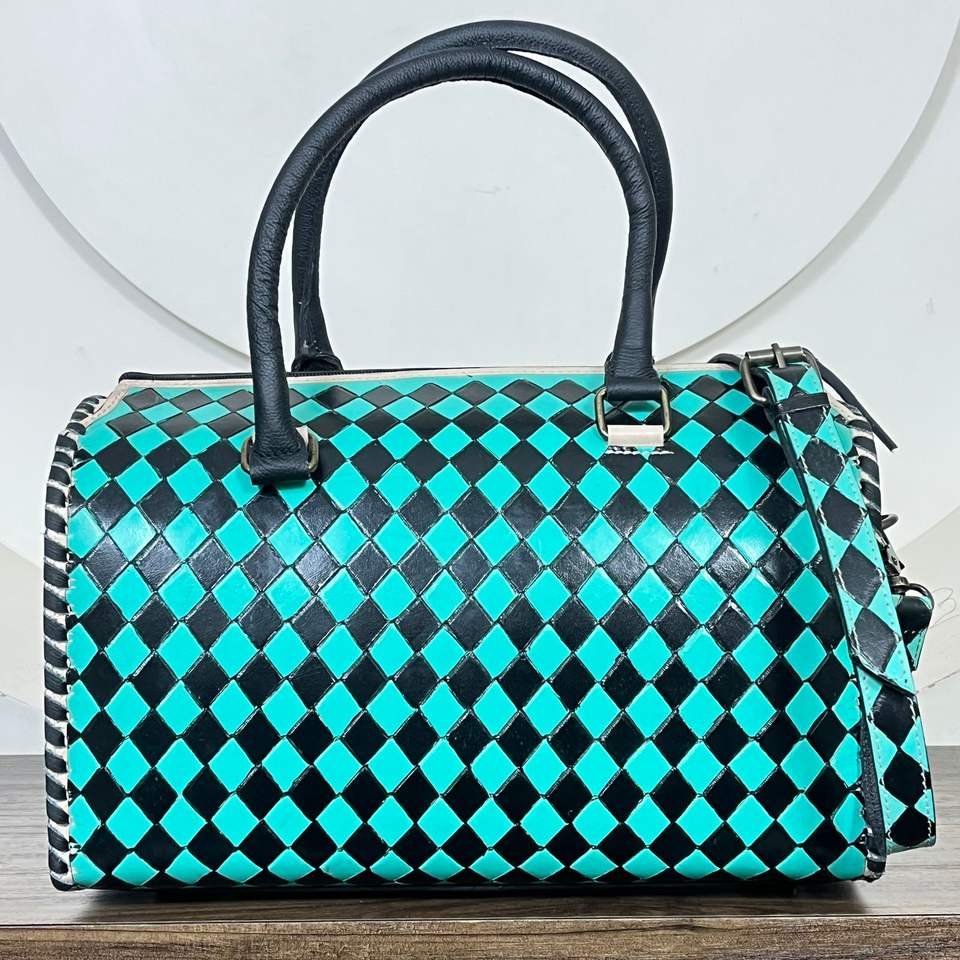 Product name:Hand Tooled Checkered Leather Speedy Duffle Bags