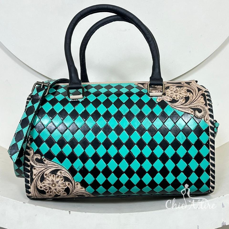 Product name:Hand Tooled Checkered Leather Speedy Duffle Bags