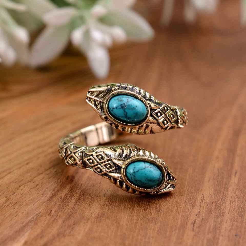 Turquoise Black Onyx Snake Cluster Ring Mandala Art Art Deco Daily Wear Handmade Brass Jewelry Personalized Gift Idea