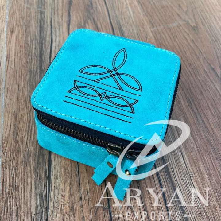 Turquoise Boot Stitch Suede Leather Square Jewelry Box Western Jewelry Display Storage Case Women Travel Portable Jewelry Case
