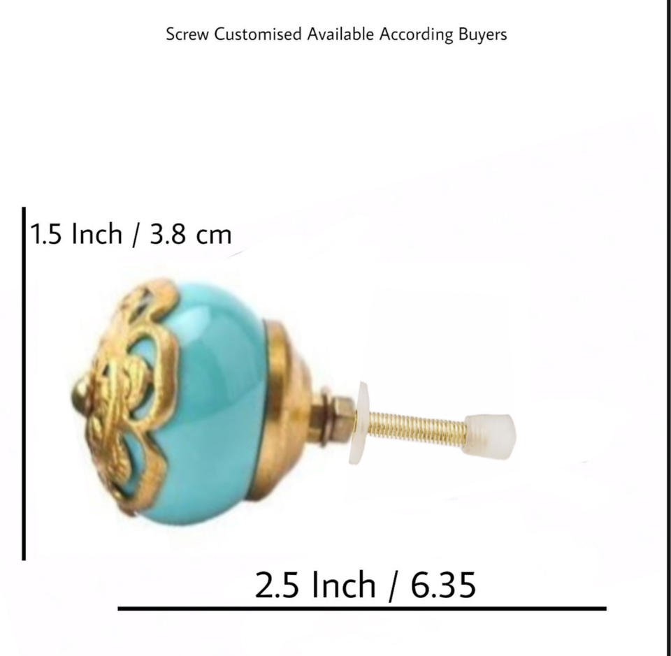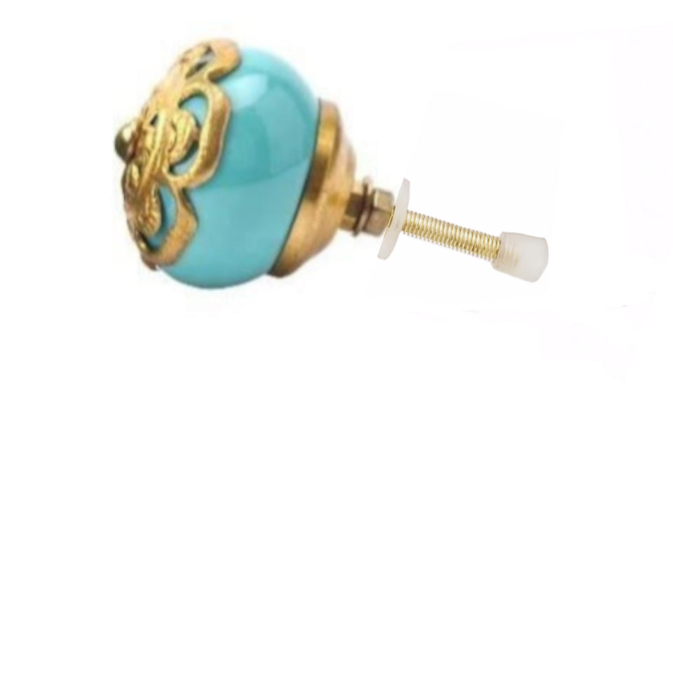 Turquoise Brass Filigree Flower Ceramic Knobs Drawer Cabinet Handle Pulls for Bedroom Living Room Wardrobe Industrial Style