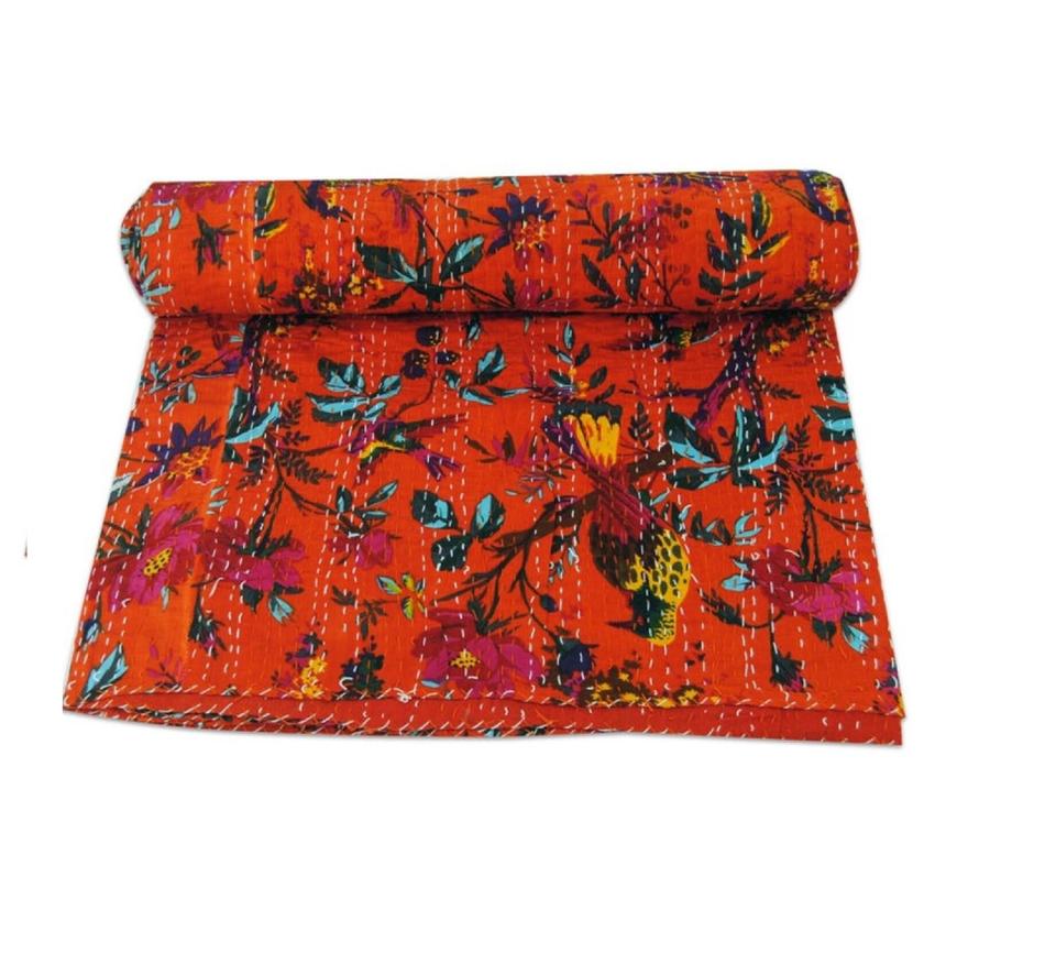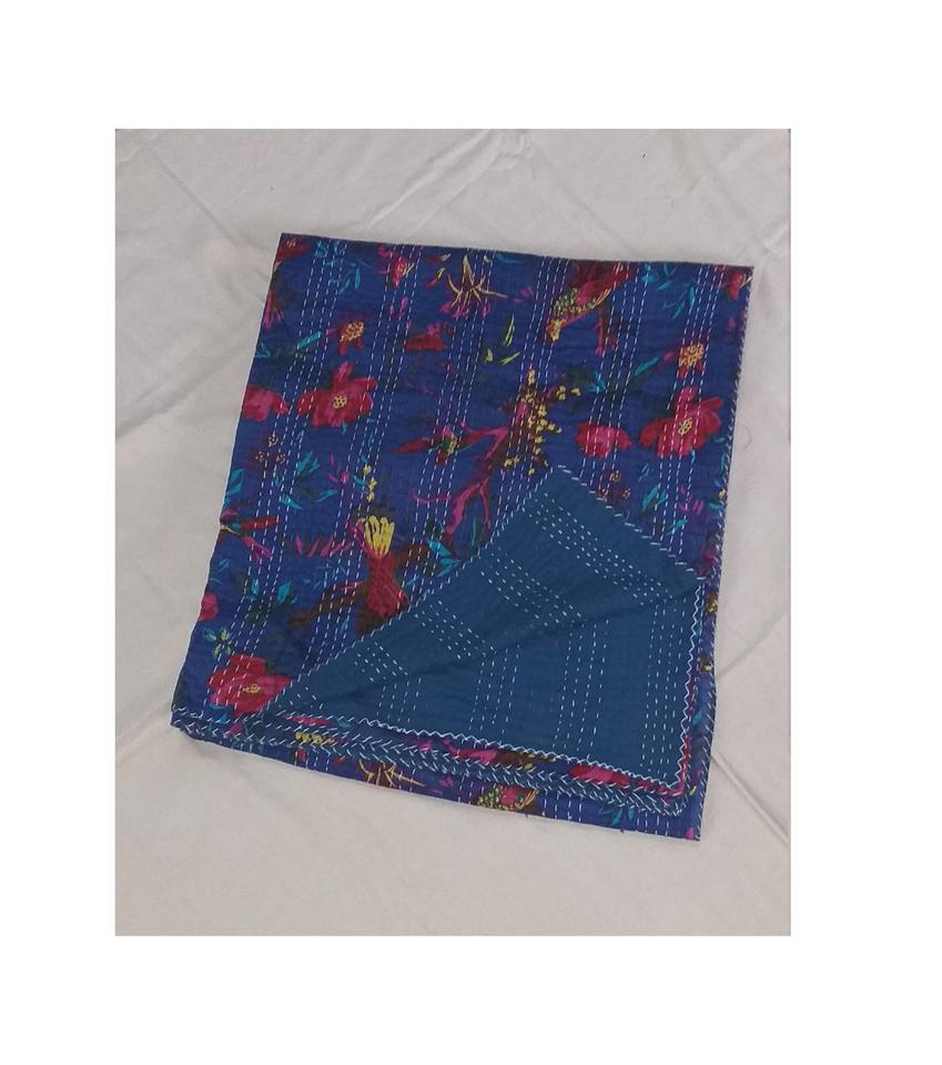 Turquoise Cotton Kantha Quilt Lightweight Organic Printed Bedspread and Sofa Coverlet Soft Hotel Bedding Set Home Decorative
