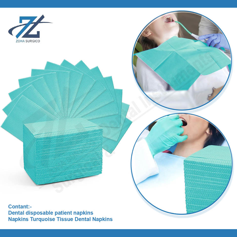 Turquoise Disposable Dental Napkins & Bibs 125 Pack Manual Fleece Material A+ Grade Quality Manufacturer Pakistan
