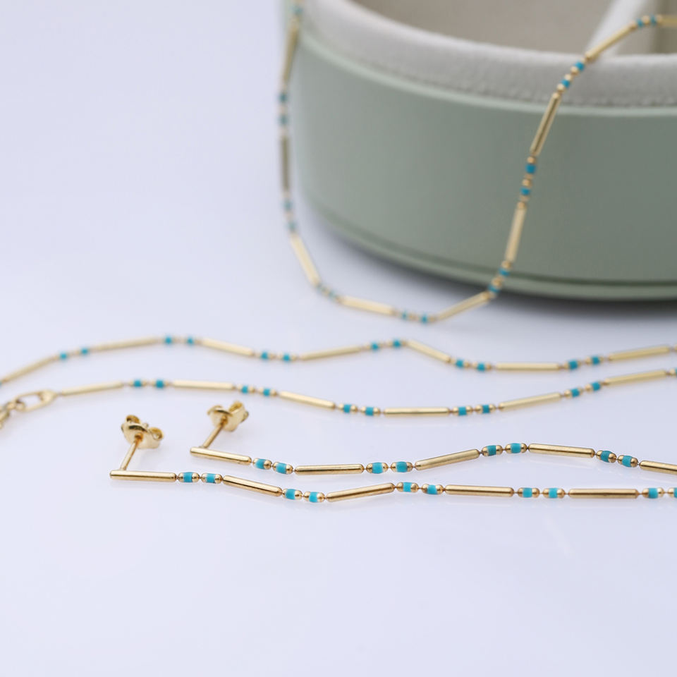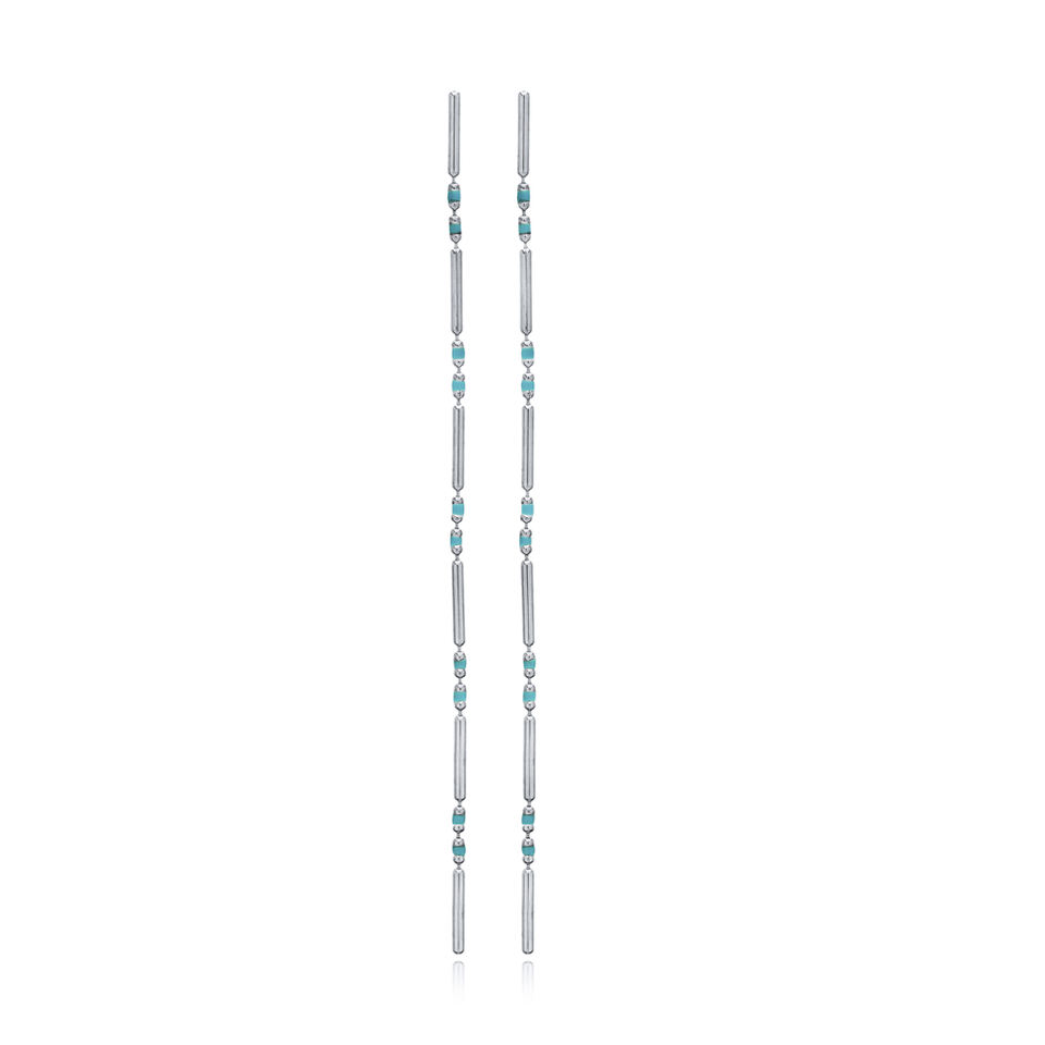 Turquoise Enamel Silver Chain Stud Long Earrings Turkish Handmade Wholesale 925 Sterling Silver Jewelry