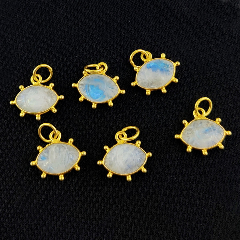 Turquoise Evil Eye Pendant Sterling Silver Evil Eye Carving Sterling Silver Gold Vermeil Bezel Charm Carved Pendants for Jewelry