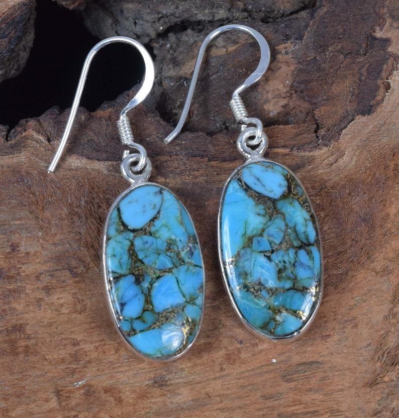 Turquoise Gemstone Earrings Girls Dangle Earrings Oyster Women 925 Solid Sterling Silver Earrings for 925 Stamped Jewelry
