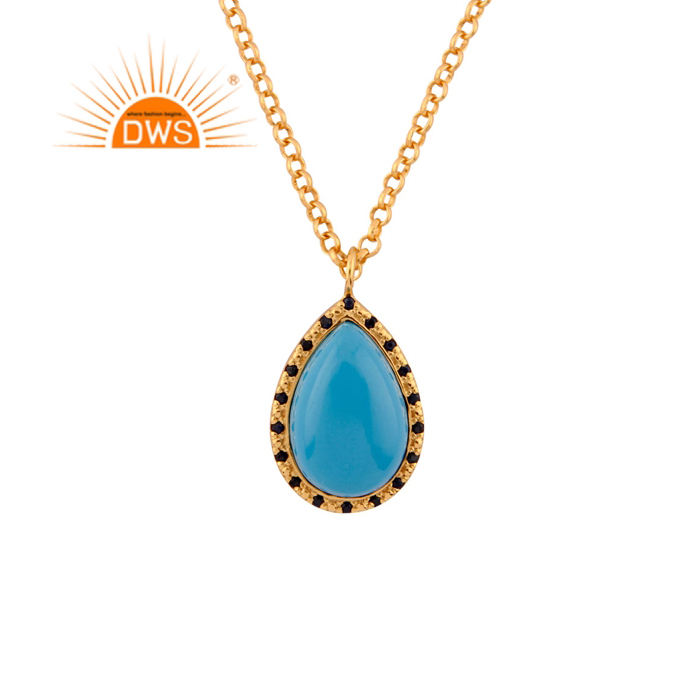 Turquoise Gemstone Sapphire Set Pendant Designer Gold Plated 925 Silver Chain Pendant Necklace Indian Jewelry Wholesale