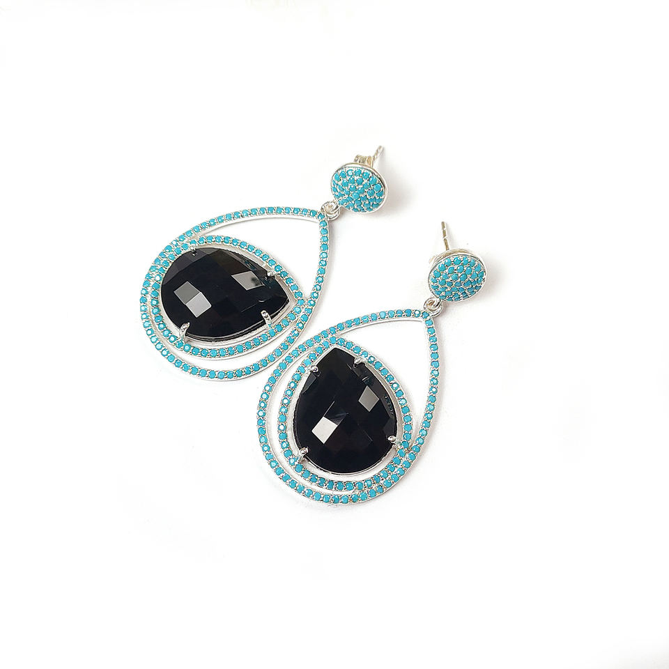 Turquoise Gemstone Stud Earrings 1.75 Inch Black Onyx with Pear Shape Gold Plated Sterling Silver Drop Earrings for Gift