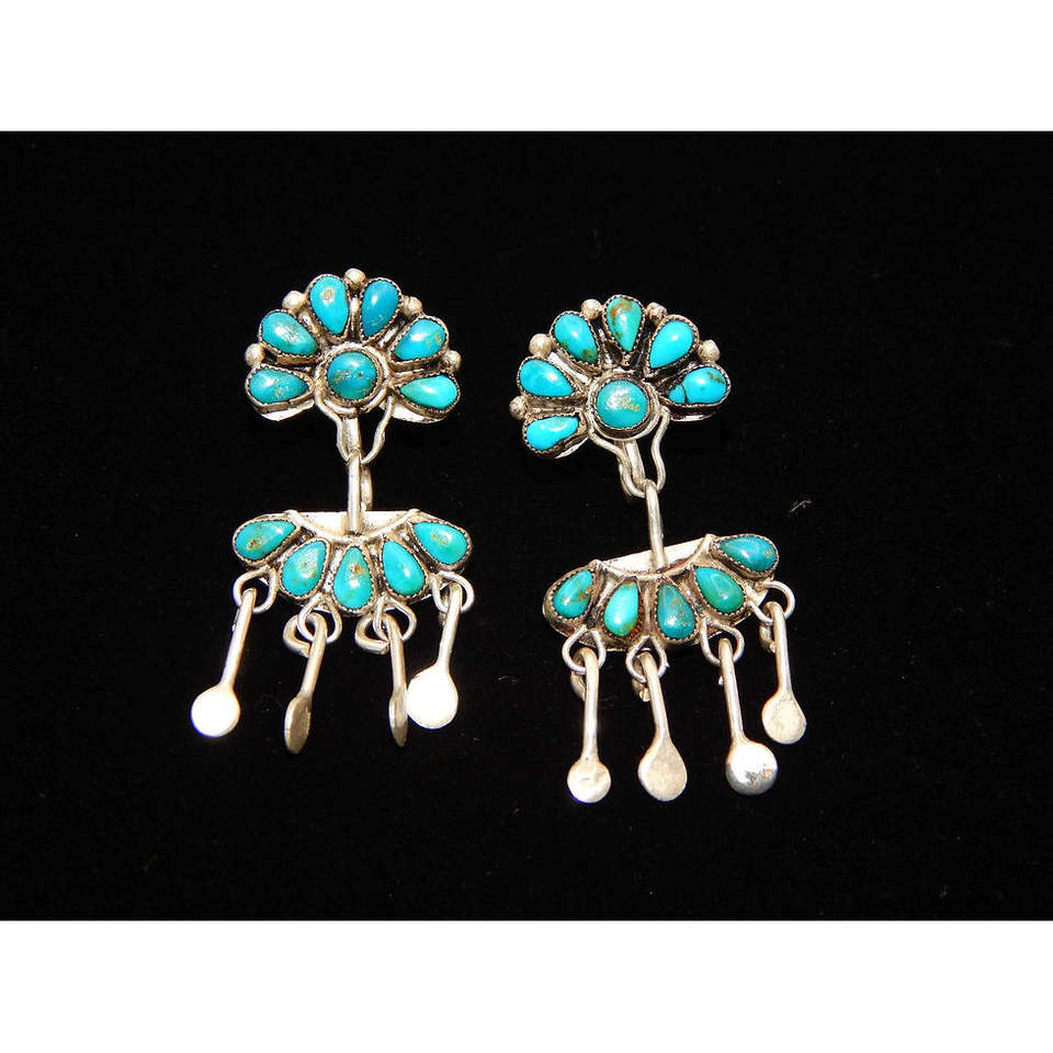 Turquoise Navajo Screw Back Dangle Earrings .925 Sterling Silver Fashion Jewelry