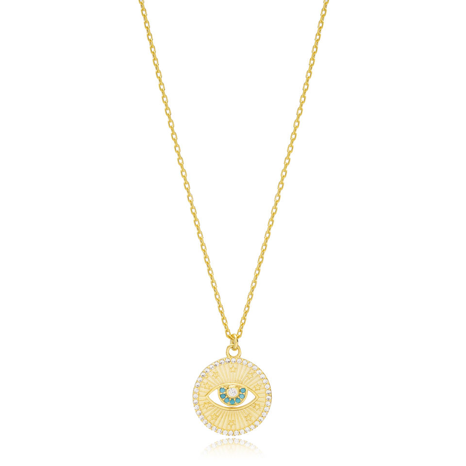 Turquoise Stone Medallion Turkish Eye Necklace Wholesale Handmade 925 Sterling Silver Jewelry