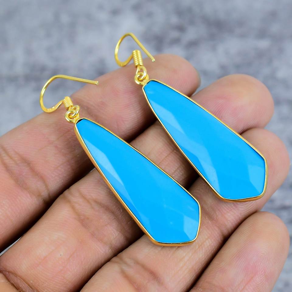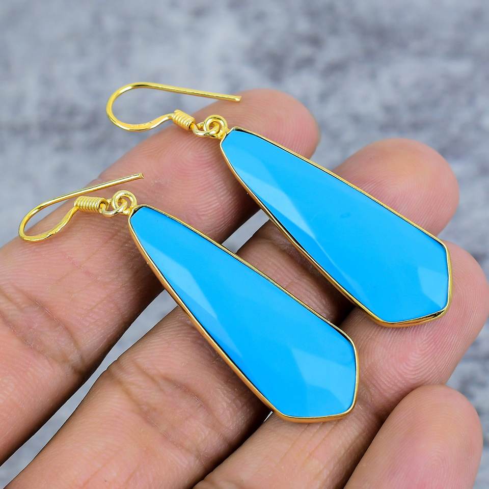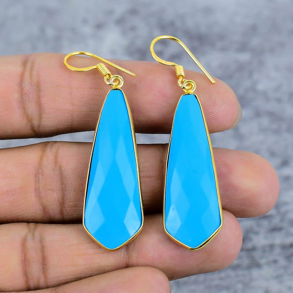 Turquoise Trillion Gemstone Dangle Earrings 925 Sterling Silver Gold Plating Trendy Women's Statement Jewelry-Wedding Party Gift