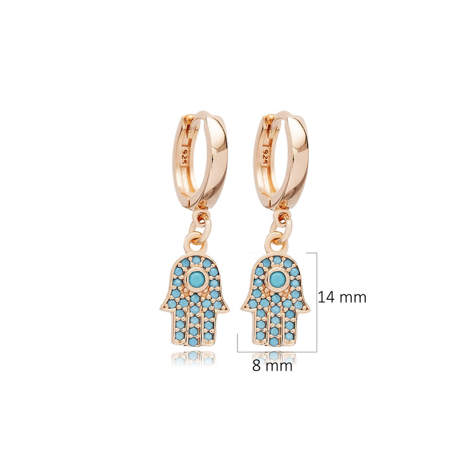Turquoise Zircon Stone Hamsa Design Turkish Wholesale Handmade Gold Plated 925 Silver Wedding Charm Dangle Earrings