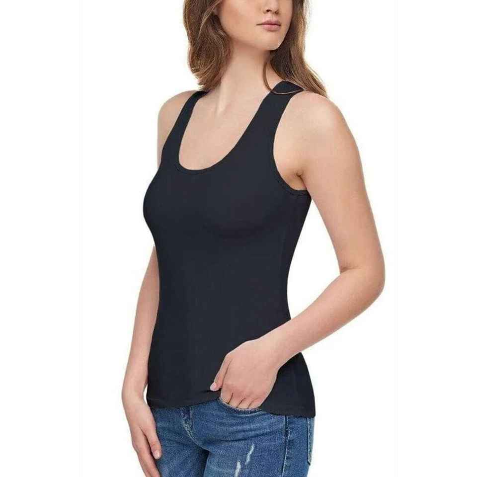Tutku Women's Black S-M Crop Top Wide Elastane Strap Tank with Breathable Ribbed Knit Square Collar Customizable Logo