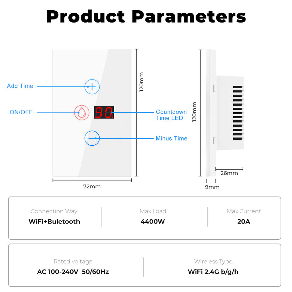 Tuya Smart 4400W 20A Power Monitor With Timer WiFi Boiler Switch Water Heater Air Conditioner EU/US Works for Alexa Google Home