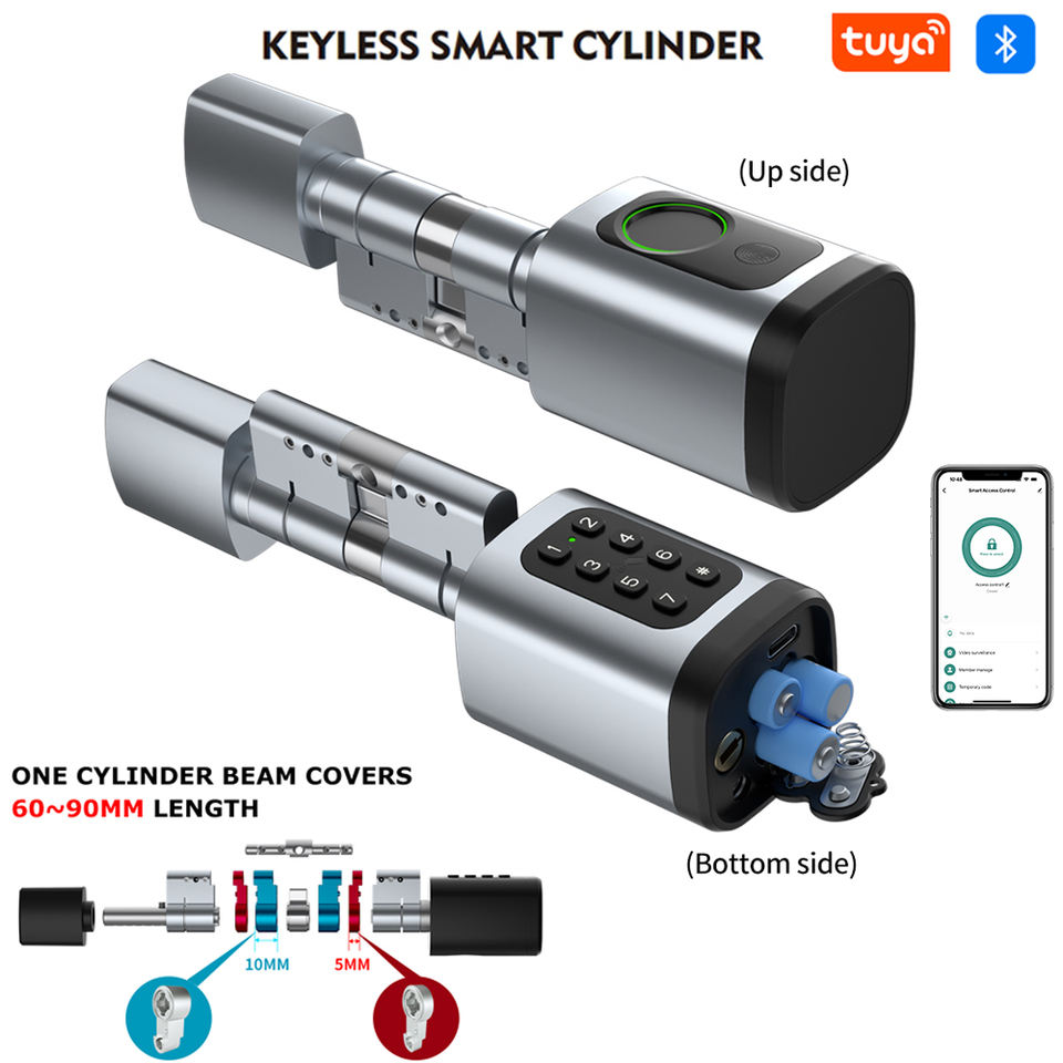 Tuya TTlock Smart Lock Keyless Entry Fingerprint Biometric Cylinder Adjustable Length Keyless Access Electronic Cylinder Lock