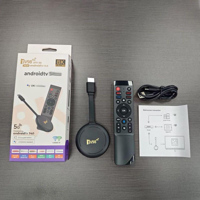 Tv98 Atv X8 Tv Stick Allwinner H313 Android 14.0 4K Wi-Fi with 1gb/8gb 2gb/16gb and Voice Remote Control