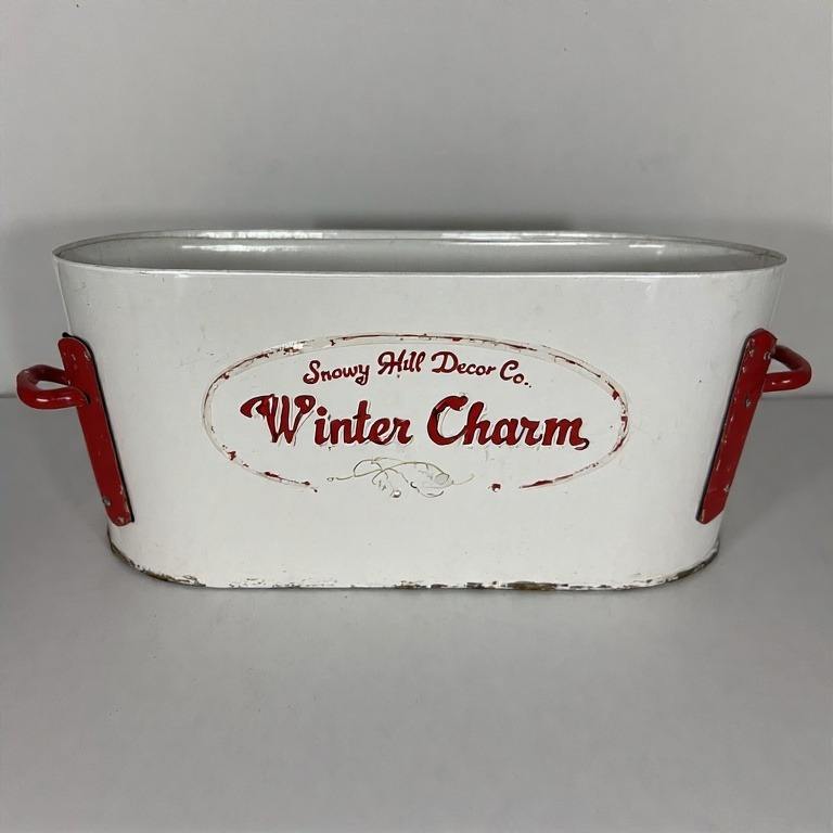 Twilight Fir Grove Metal Planter for Elegant Garden Landscaping Seasonal Blooms with Pinecones and Poinsettias