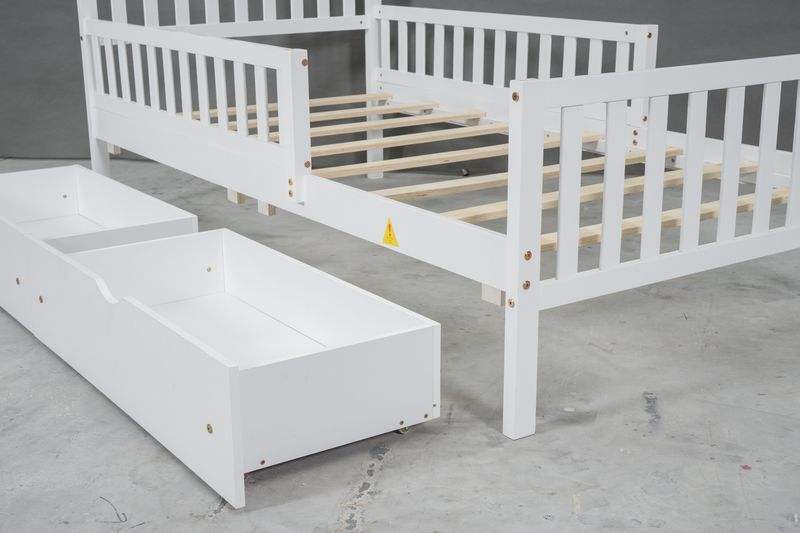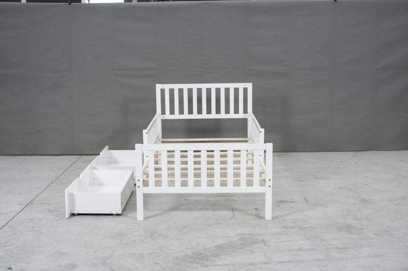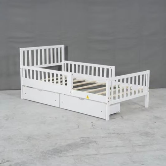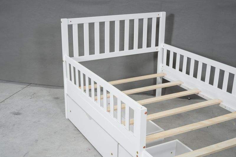 Twin Bed Frame with Built-In Storage Drawers Sturdy Wooden Construction for Children's Bedroom Dorm Room Space-Saving Design