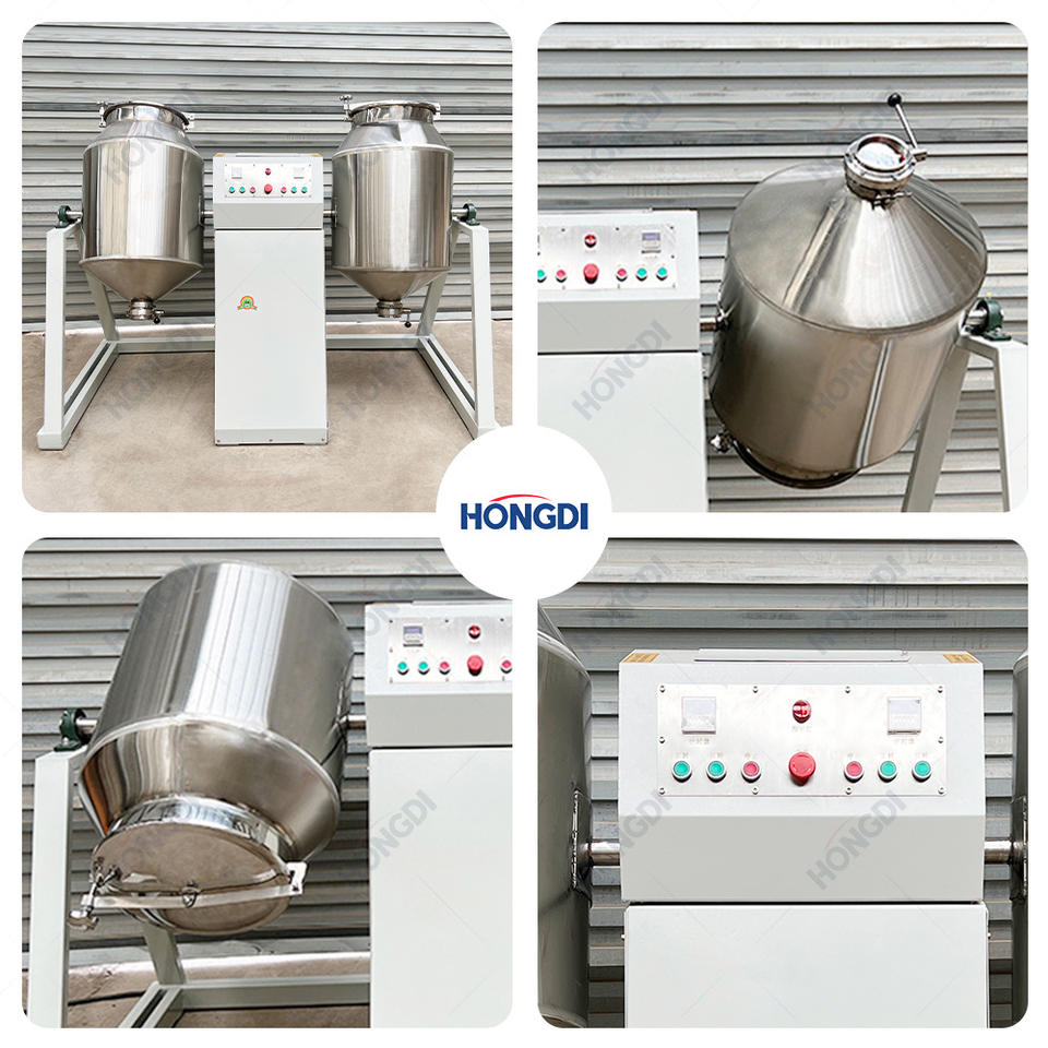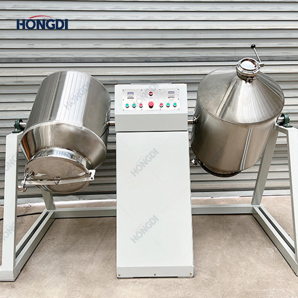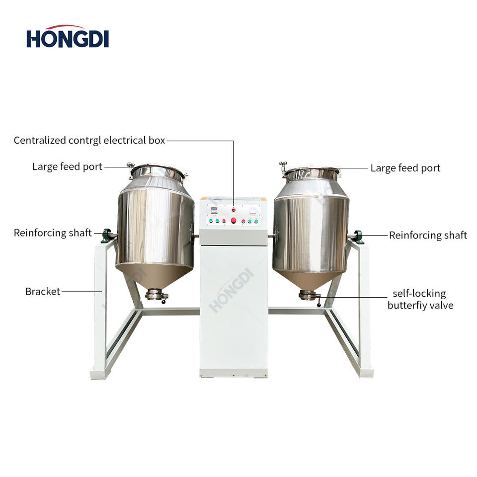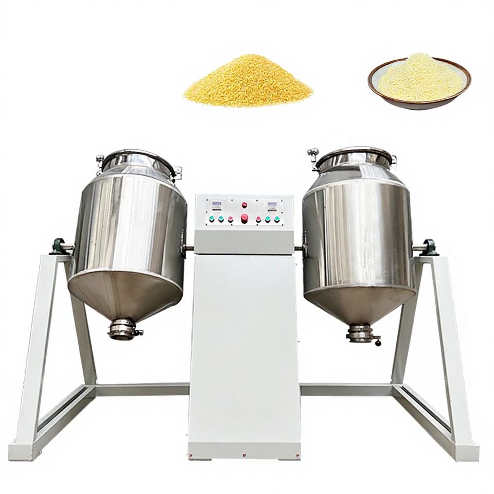 Twin Drum Double Cone Mixer Stainless Steel Powder Mixing Machine Rotary Blender AC Motor Automatic 200L Capacity for Food