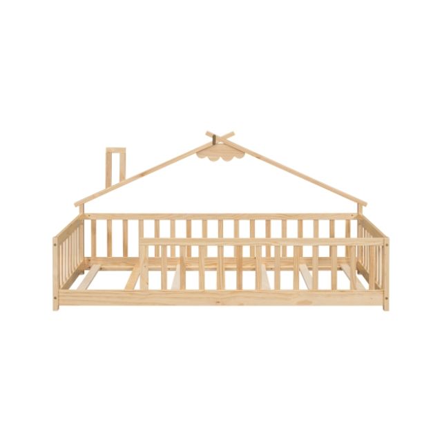 Twin House-Shaped Bedside Floor Bed with Guardrails, Slats, Without Door ,Natural for Kids OEM Supplier Vietnam