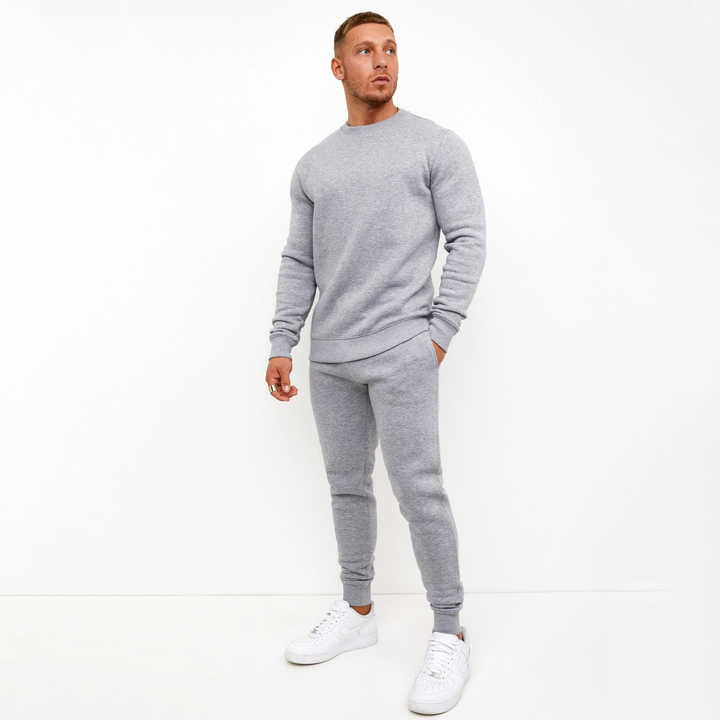 Twin Men's Heavy Cotton Sports Sweat Suit Oversized Crew Neck Track Joggers Set in Brown White Winter Gym Sportswear
