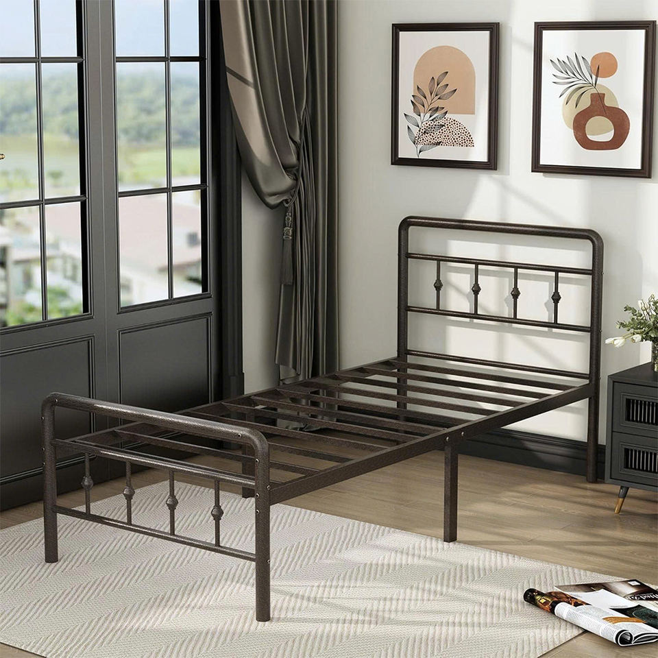 Twin Metal Bed Frame with Headboard & Footboard, 16" Platform, Victorian Style, Underbed Storage