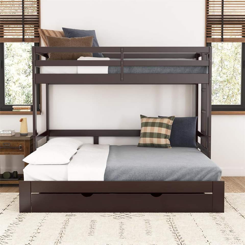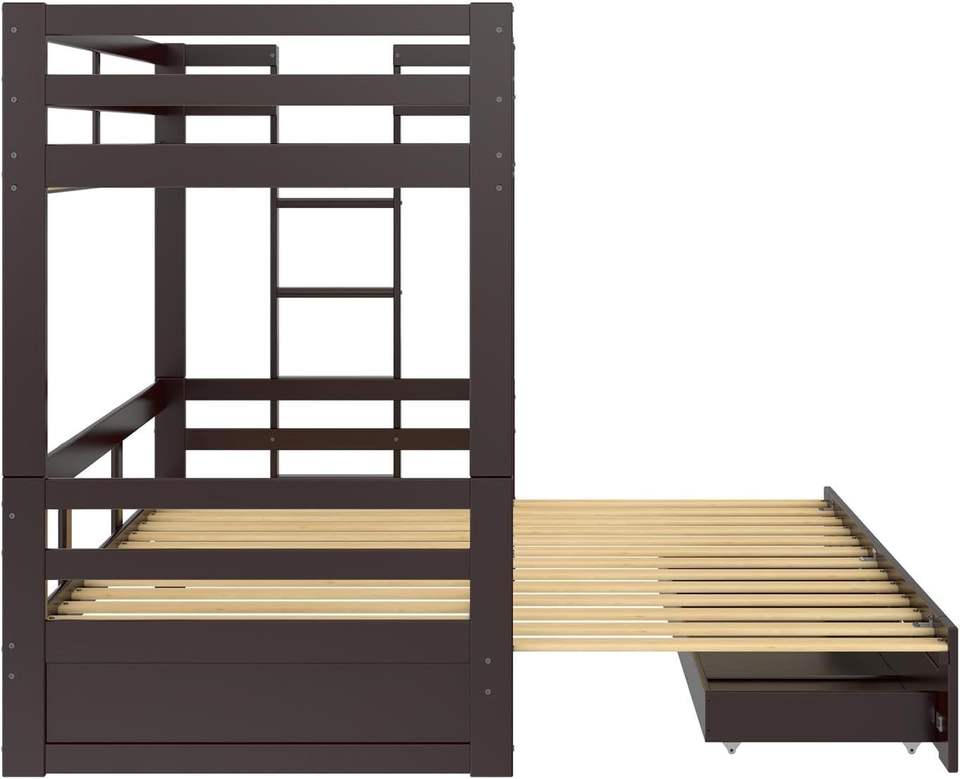 Twin Over Twin/King Wooden Bunk Bed with Storage Brown-Visit REALROOMS Store
