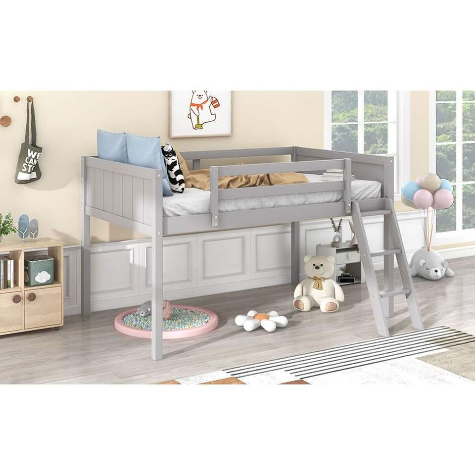 Twin Size Wood Low Loft Bed with Adjustable Ladder for Kids for Left or Right Placement