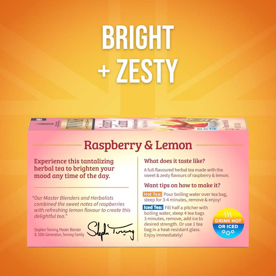 Twinings Raspberry & Lemon Herbal Tea Individually Wrapped Bags, 20 Count (Pack of 6) 120 Teabags