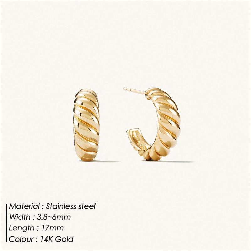 Uionen 436 Women's Trendy Twist Curved Stud Earrings Stainless Steel Gold Plated Available in Gold and Silver