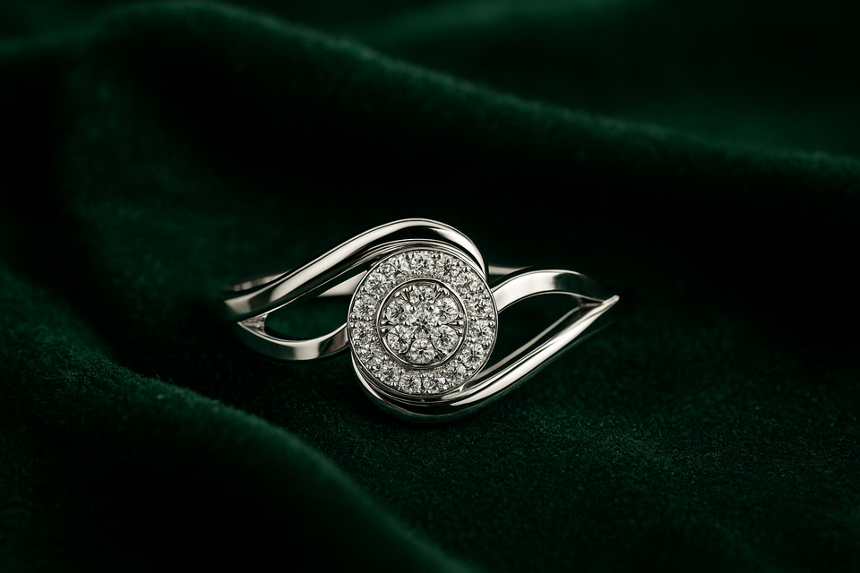 Twisted Halo Cluster Sterling Silver 925 Zircon Trendy Elegant Swirl Design Wedding Promise Ring for Women Young Girls Everyday